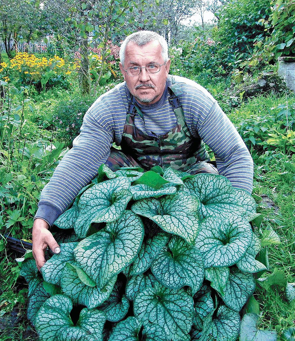 Robust, Dynamic, Brawny, Strapping-all perfectly describe this “king-sized” Brunnera specimen. Large, heavily silvered, heart-shaped leaves can reach 12” x 10”. Artfully designed veining with some green margins showing. A mist of sky blue flowers hover in sprays above the wide clump. May self seed, but seedlings with plain green leaves can easily be weeded out. Slightly moist, well-drained soil is best. Absolutely stunning! No perennial garden should be without Brunnera.