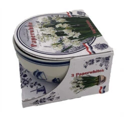 Paper White Narcissus bulbs are the fastest flowering indoor bulbs. They will bloom about three weeks after planting. We deliver a complete set of 3 bulbs and a Delft Blue styled, 5″, ceramic bowl completed with decorative stones. The whole set will flower within weeks, indoors! Makes a great gift and is extremely fragrant! Store in the refrigerator if to be given as a gift.