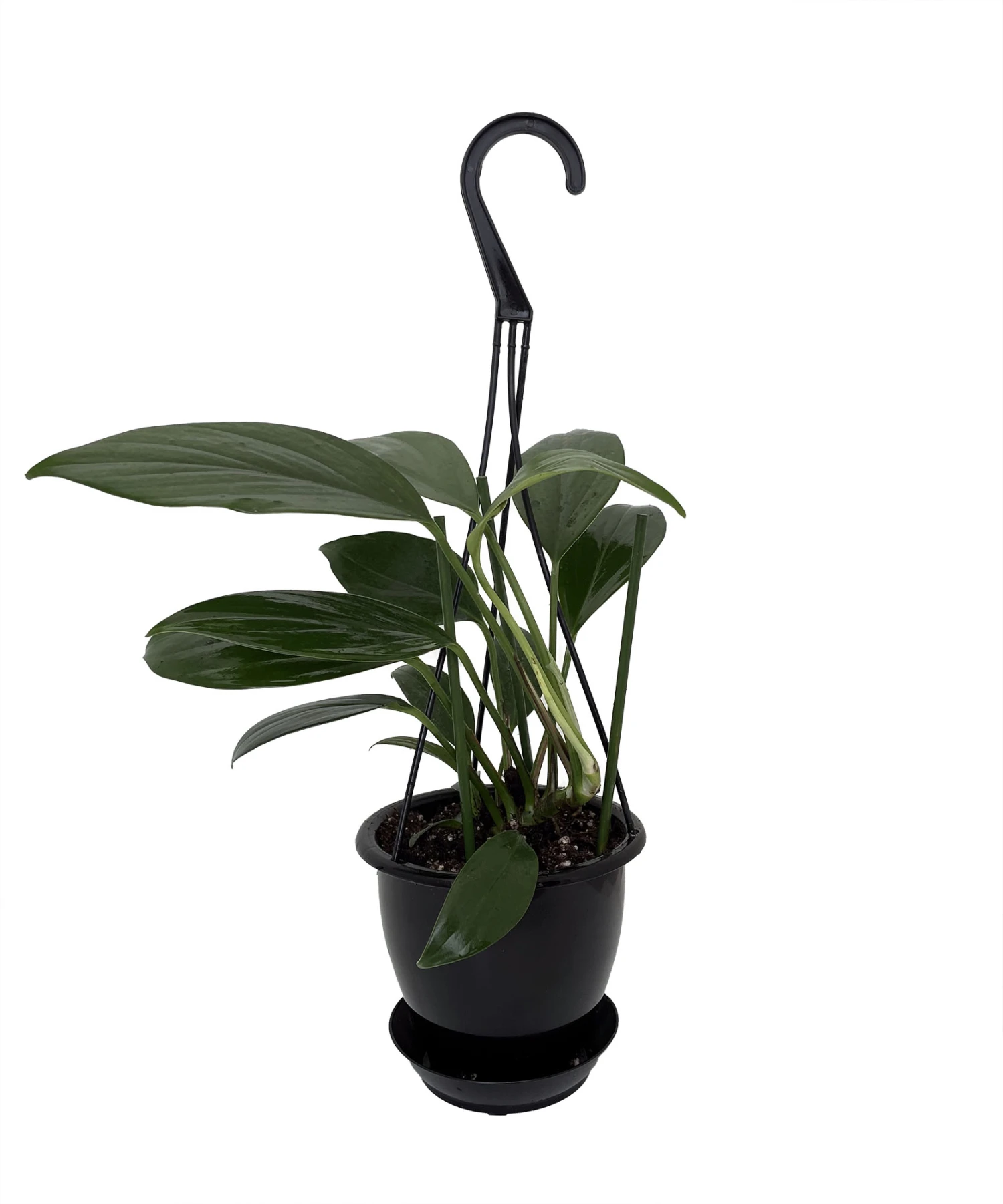 Rhaphidophora decursiva is a climbing plant in the Aroid family. You might not guess from the small pointed leaves of these starter plants, but this foliage of this plant will become gigantic and highly fenestrated in the right conditions. Leaves can grow to several feet long as this plants climbs trees that are large enough to support it. In the home it is not likely to reach such sizes, but its glossy green leaves still make for a wonderful tropical backdrop. Splits in the leaves develop as the plant matures.
