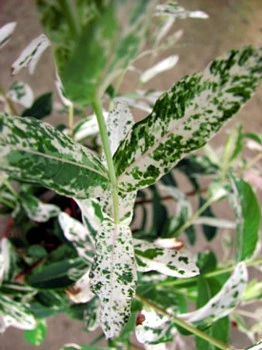 Family: Salicaceae (Sa-lix: classical name for Willow) Hakuro Nishi Japanese Dappled Willow (Salix integra ‘Alba Maculata’) A Japanese plant with striking white-green-pink foliage. Slender branches are always moving in the breeze. Regular shearing is necessary to maintain leaf variegation. Very popular in Europe and gaining momentum in U.S. Also can be trained into an unusual bonsai specimen.