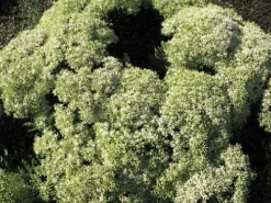 Dense arching clumps of fleshy stems are only 8″ tall, but perfectly proportioned, cascading like a Boston Fern. Deeply serrated leaf edges add fascinating texture. Tight clusters of billowy white-to-pink star-shaped flowers adorn the foliage of this Sedum in summer. Hardy Zones 3-11. Mature Height: 8-10″.