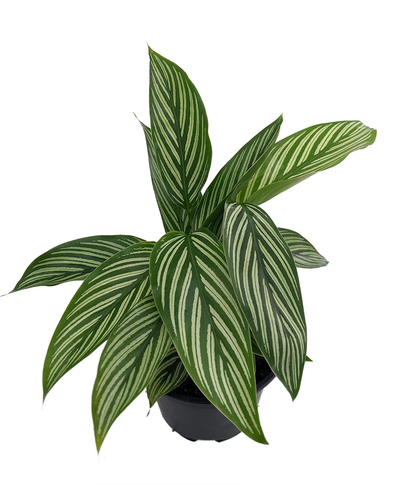 Calathea is a tropical plant from Brazil, Guyana, Colombia and Nicaragua. The handsome leaves are the attraction for tropical gardeners and indoor plant lovers as well. They are easy to grow indoors. Simple provide bright, indirect light and keep evenly moist, not wet or dry. Trim as needed.