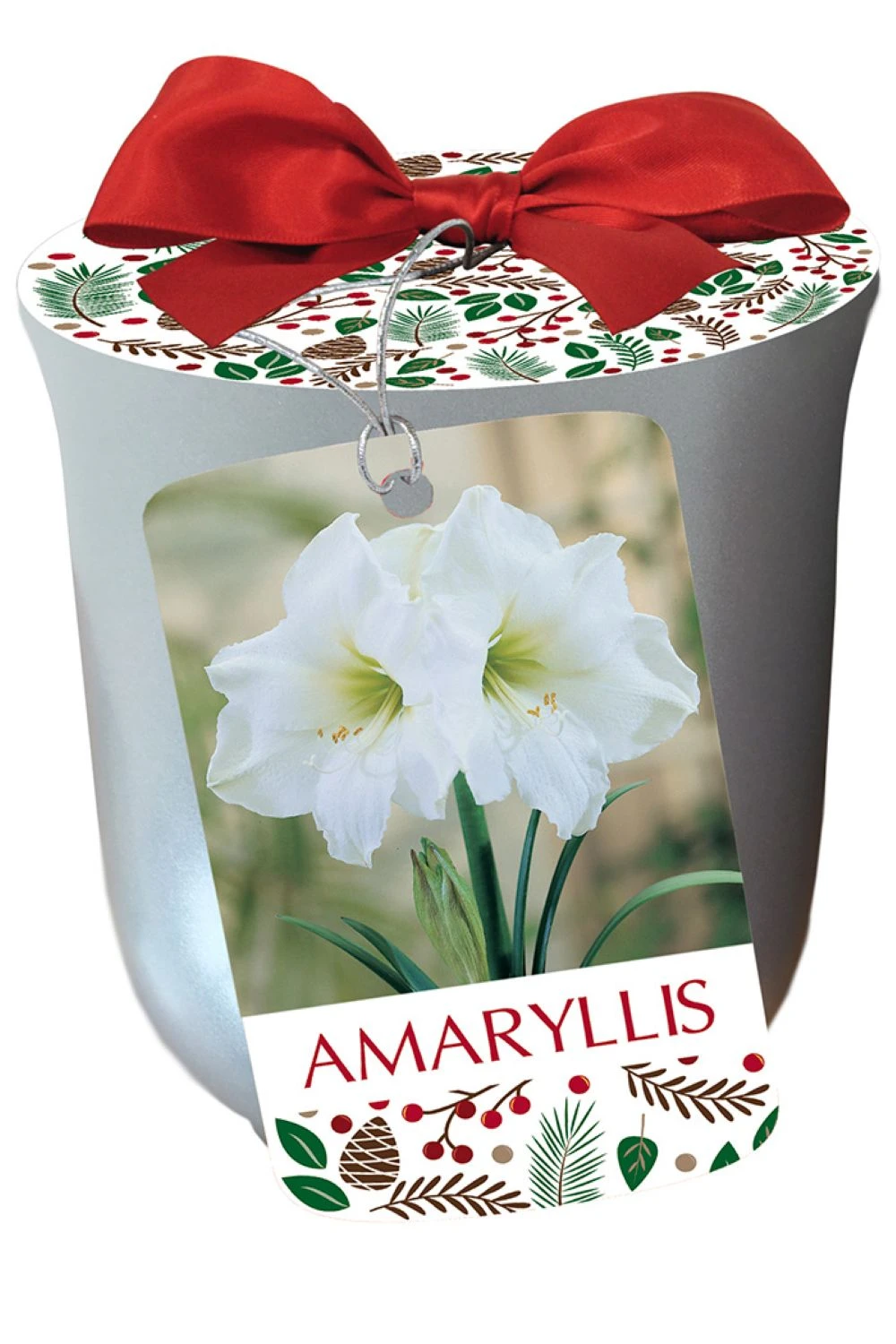 Bright White with Green Throats. Kit includes: Silver Ceramic Pot, Large Bulb, Planting Medium and Instructions